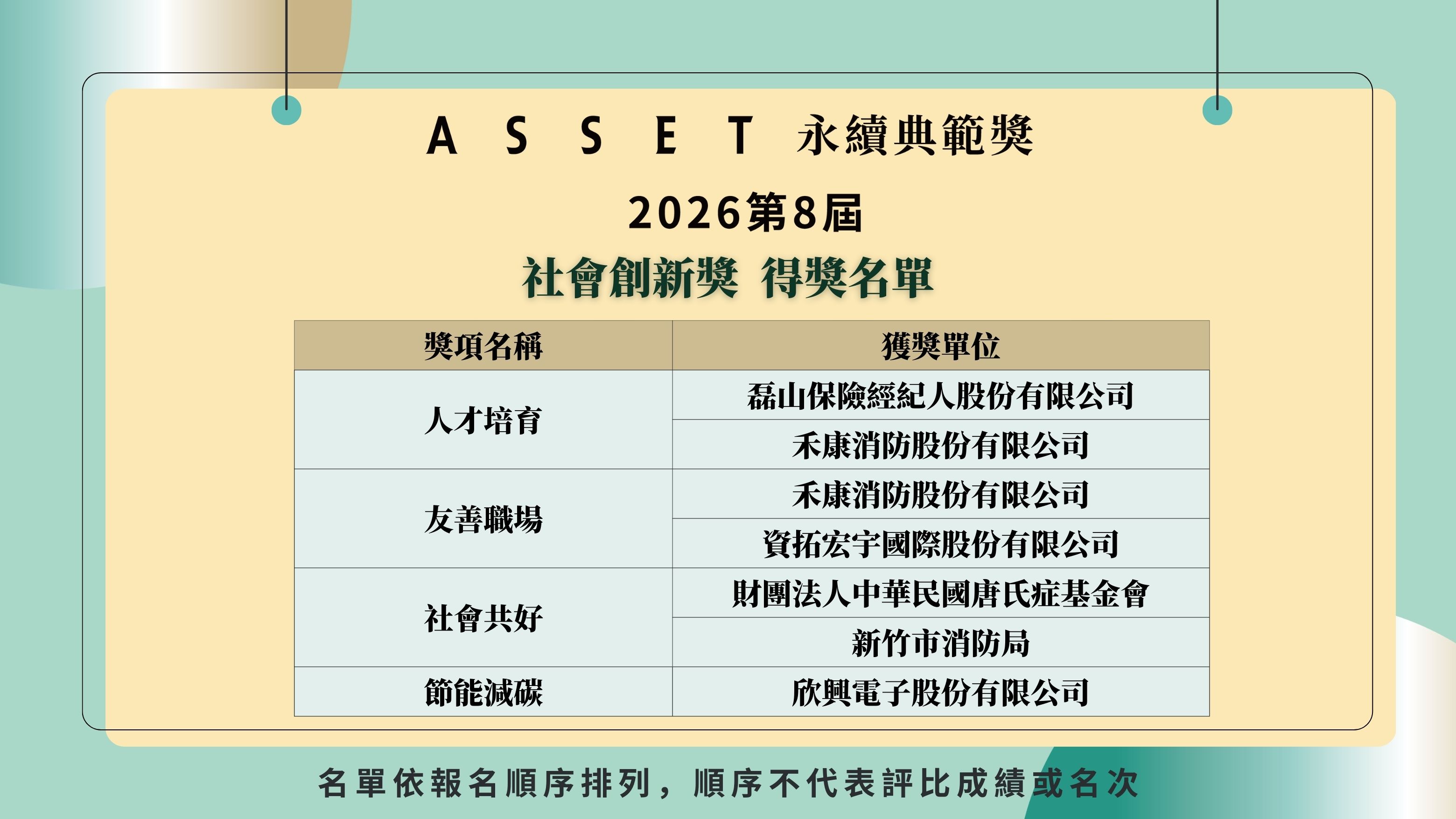 2026 第八屆 ASSET永續典範獎-【社會創新獎】得獎單位名單